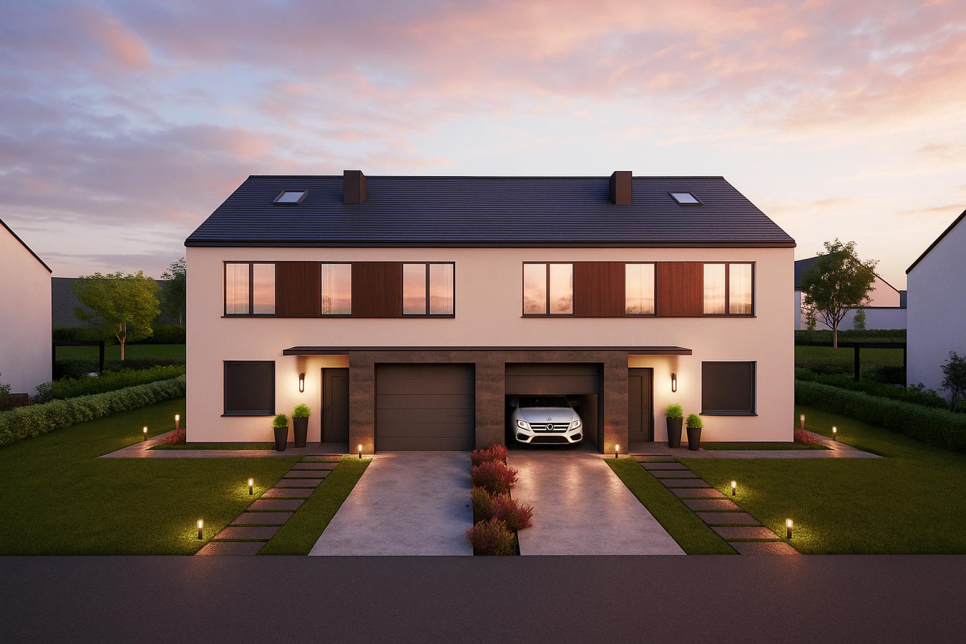 Domy w zabudowie bliźniaczej tworzą przyjazne, nowoczesne osiedle, zaprojektowane z myślą o komforcie i jakości życia. To propozycja dla tych, którzy szukają harmonii między miejskim stylem życia a spokojem natury.