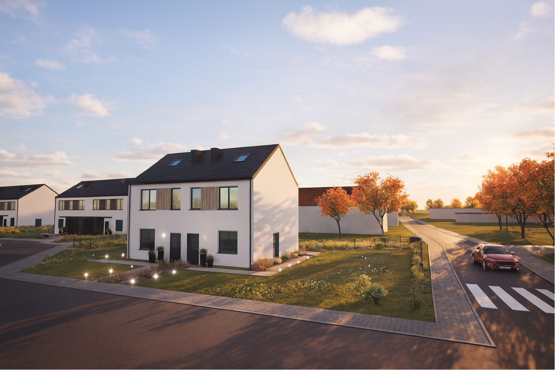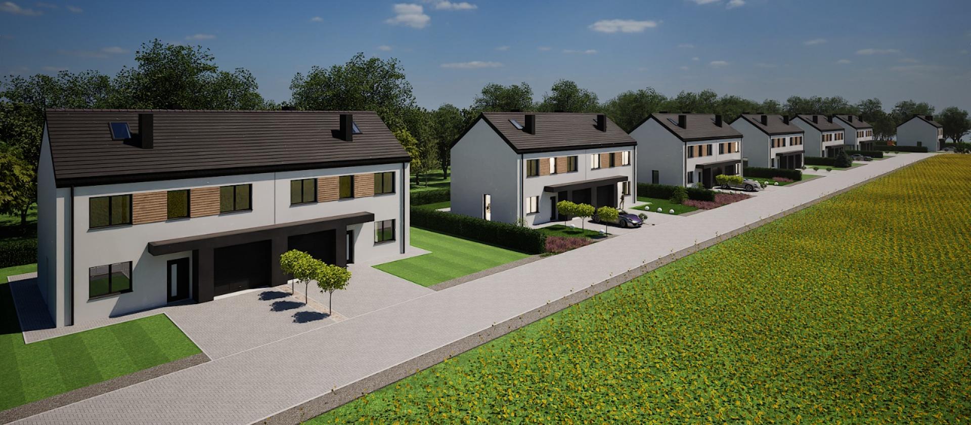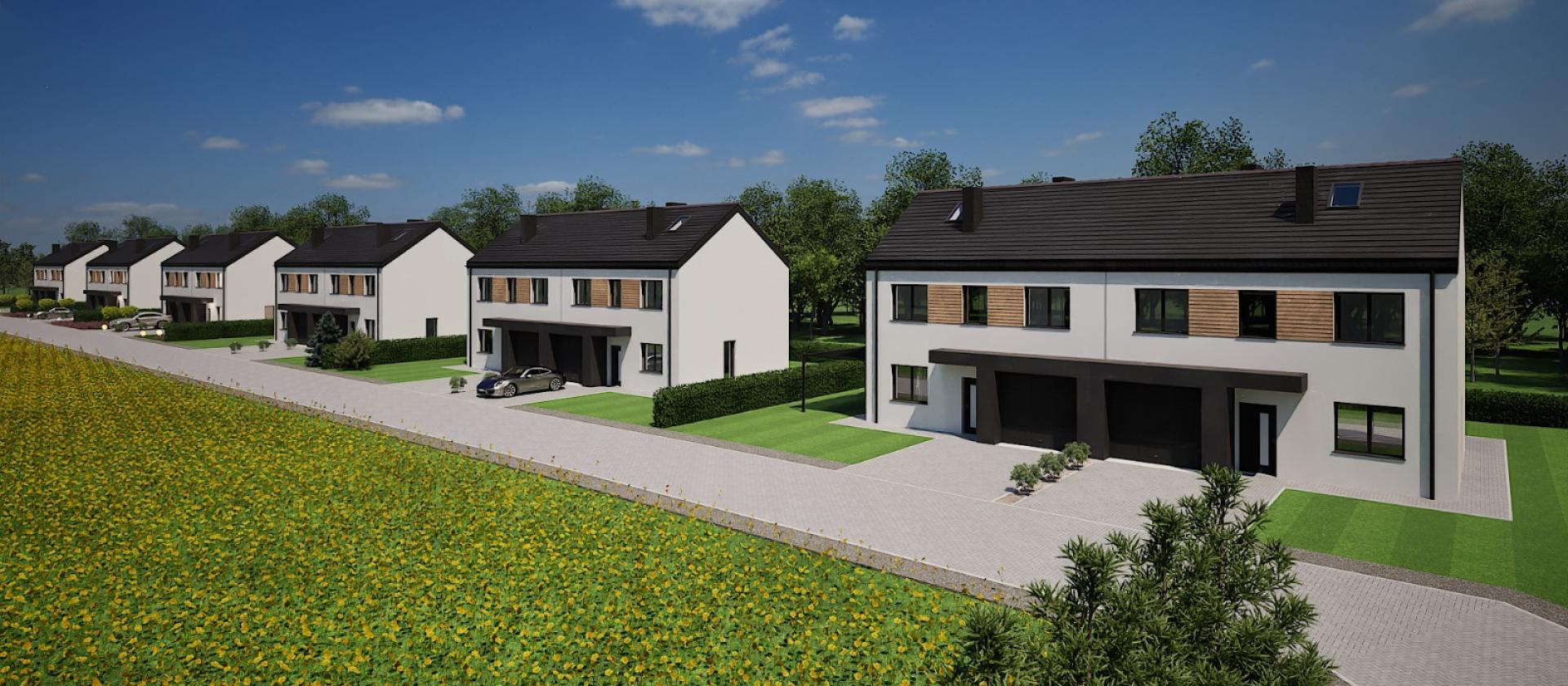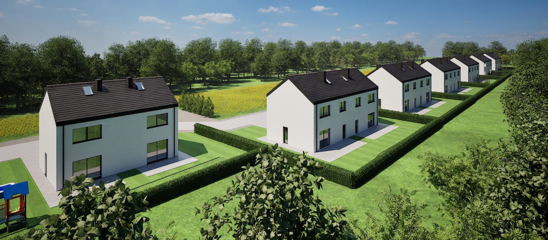 Domy w zabudowie bliźniaczej tworzą przyjazne, nowoczesne osiedle, zaprojektowane z myślą o komforcie i jakości życia. To propozycja dla tych, którzy szukają harmonii między miejskim stylem życia a spokojem natury.